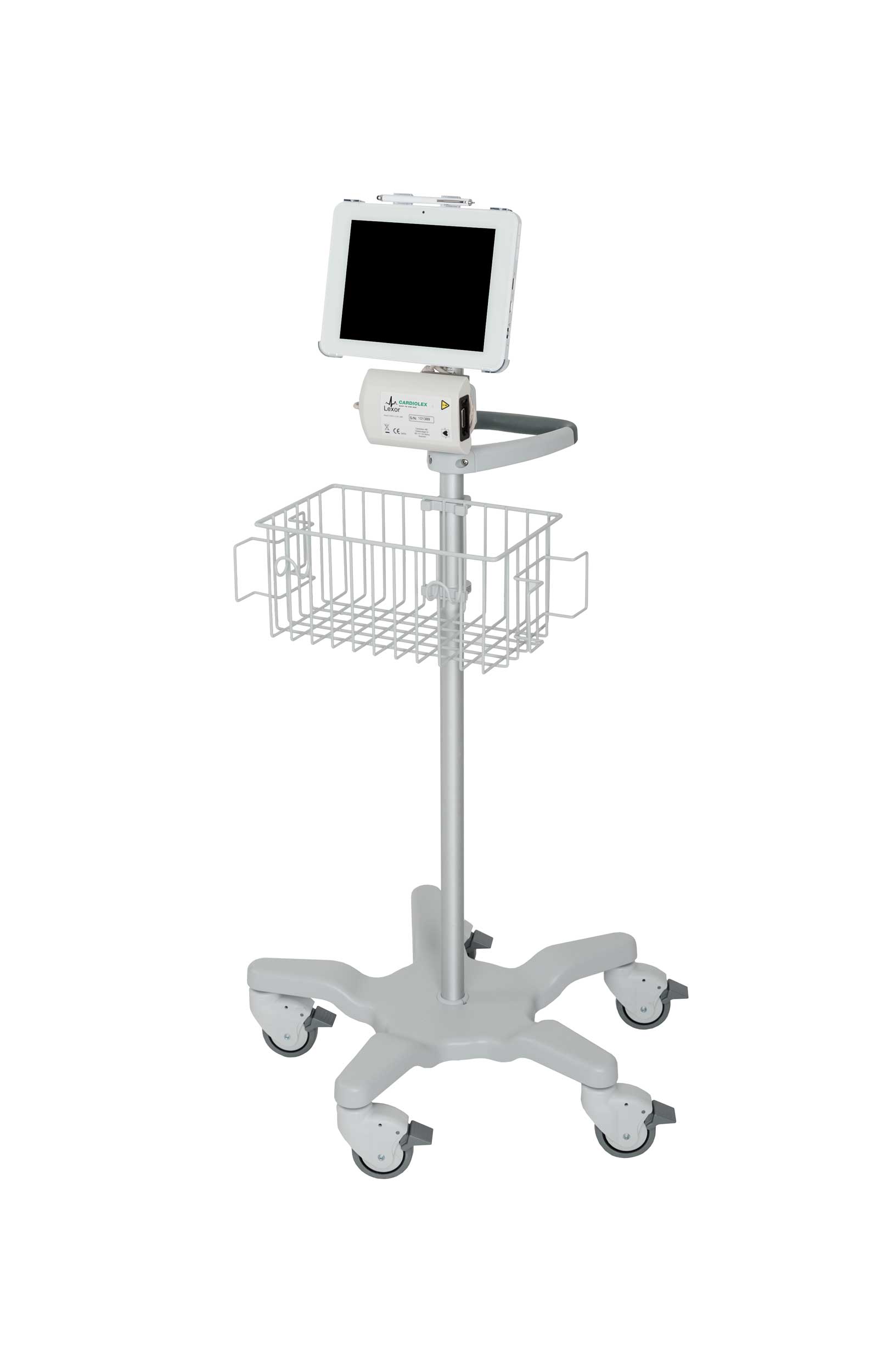The system consists of a mobile trolley, a portable 9,7” tablet (windows embedded 7) with color touch screen and on screen keyboard. The system is powered by a battery with at least two hours battery life and the ability to communicate wireless.